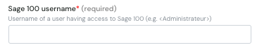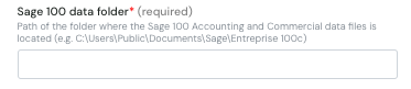 In order to establish the connection with Sage 100 "On Premise", you will need to retrieve a certain amount of information on your Sage 100 instance and from the integrator partner who installed your Sage 100 instance.