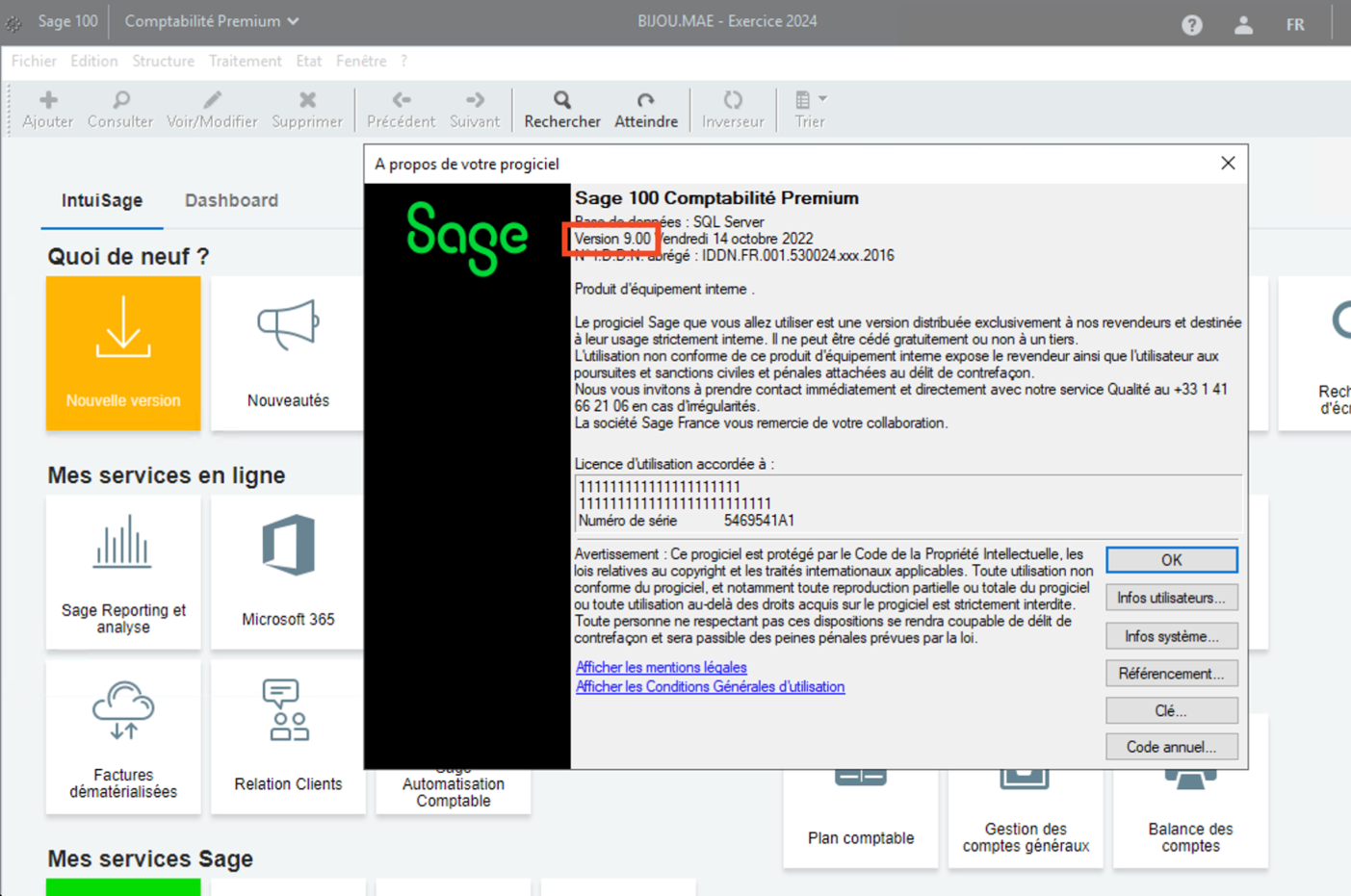 On the page that opens, you will find at the top of the page the number of your Sage versions.