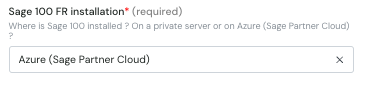 Step 3: Choose your Sage100 instance installation type (either on premise or on a Azure SPC server)