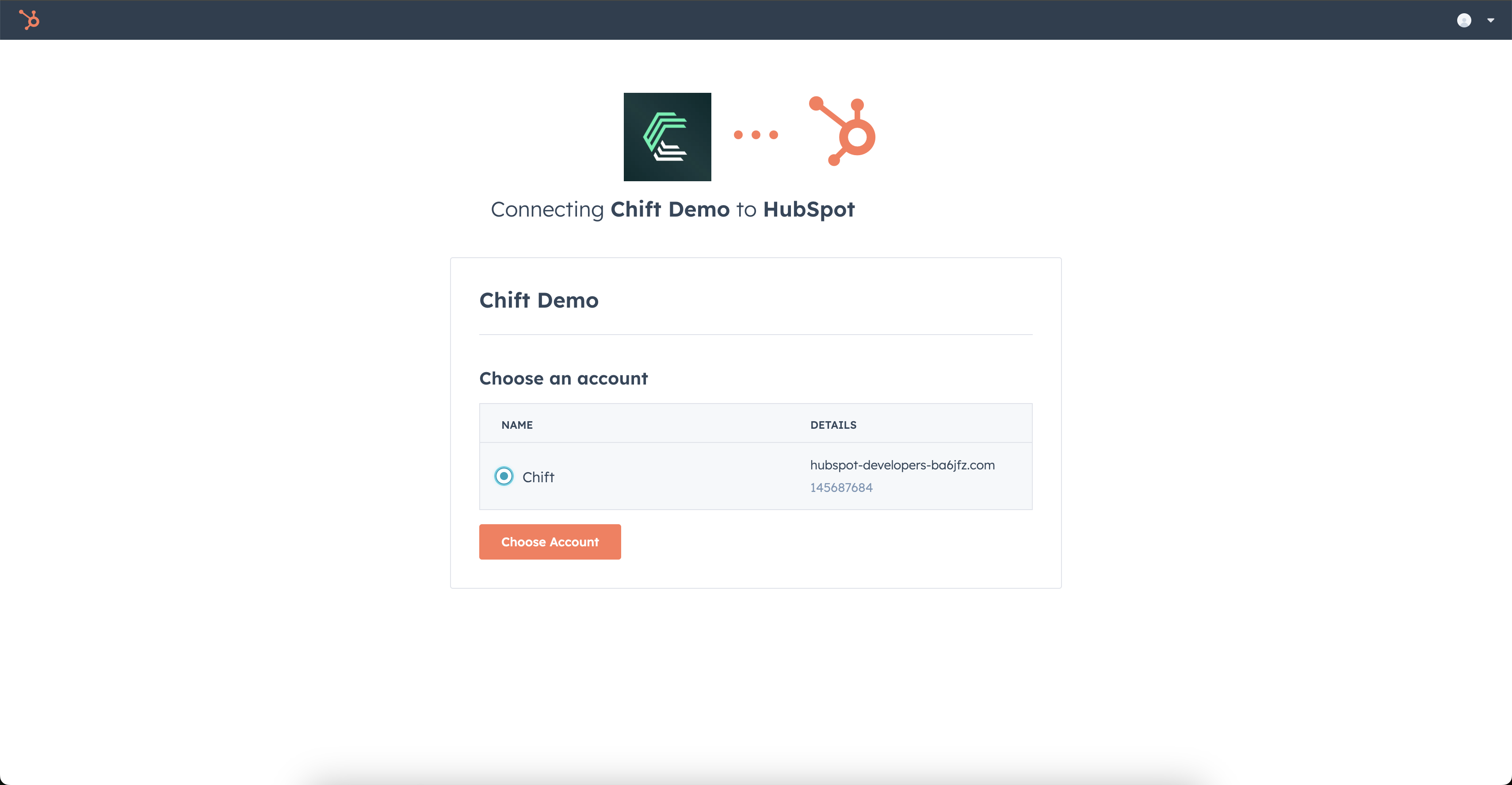 Step 2: Select the Hubspot account to connect.