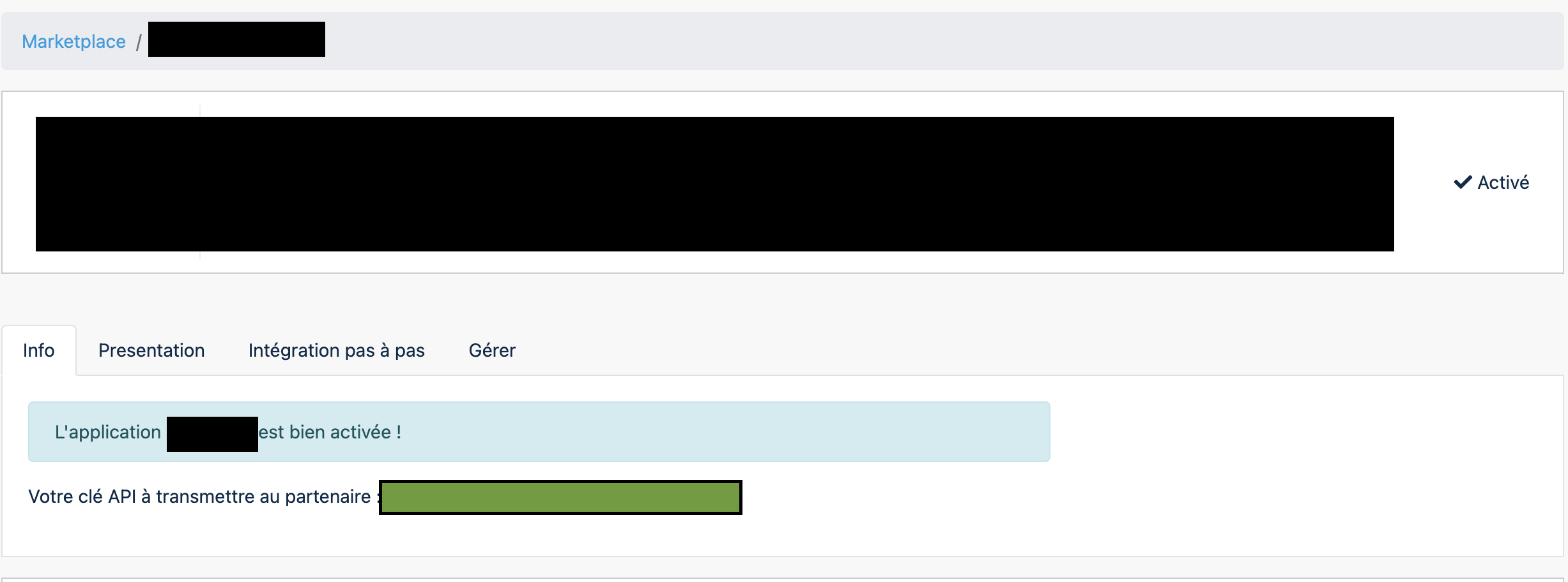 ⚠ If an API key was already generated in the past, Zelty will only display a masked version (for example: MTY123******IHA=).