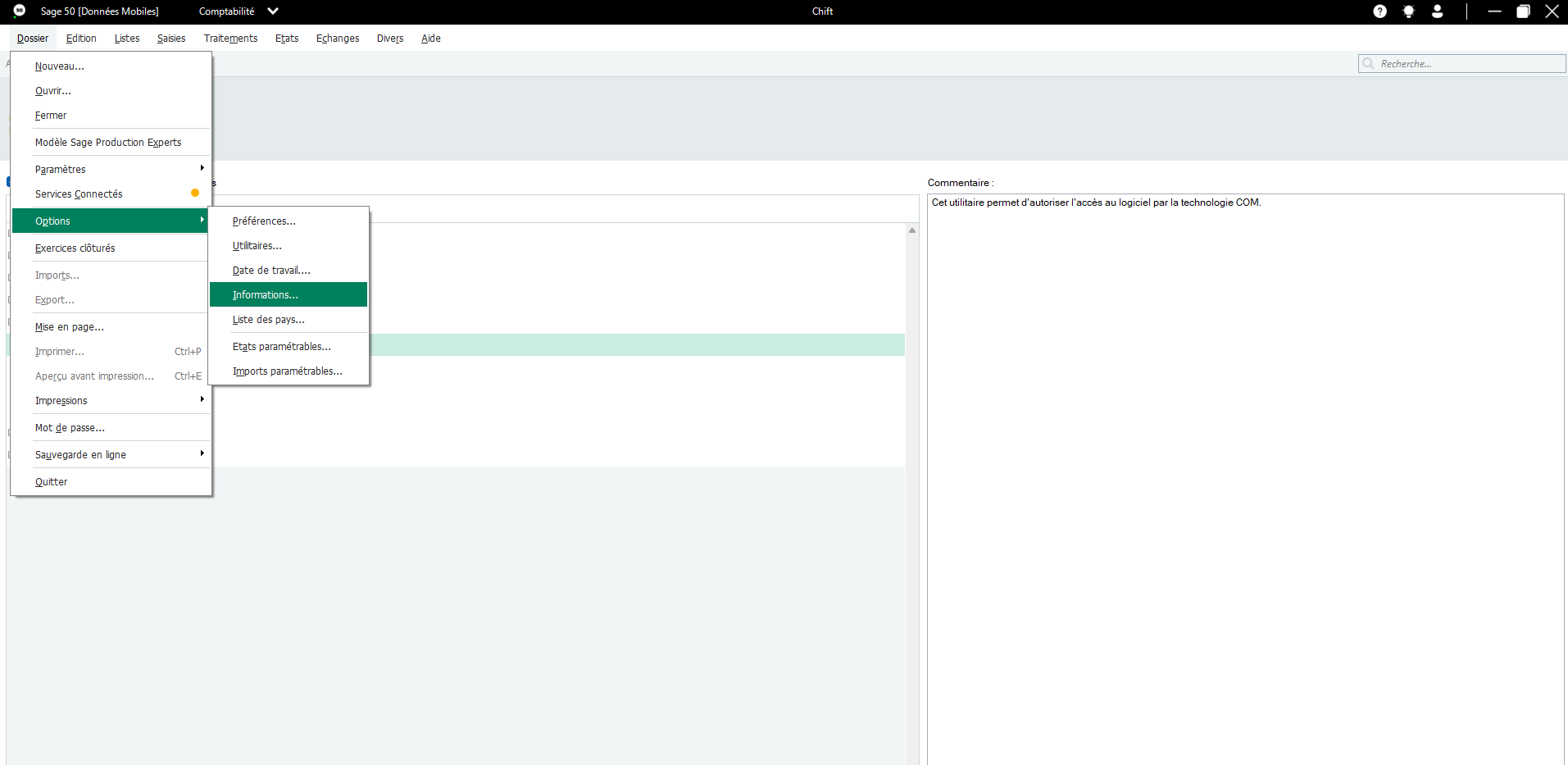 From the Sage 50 menu → File → Options → Information