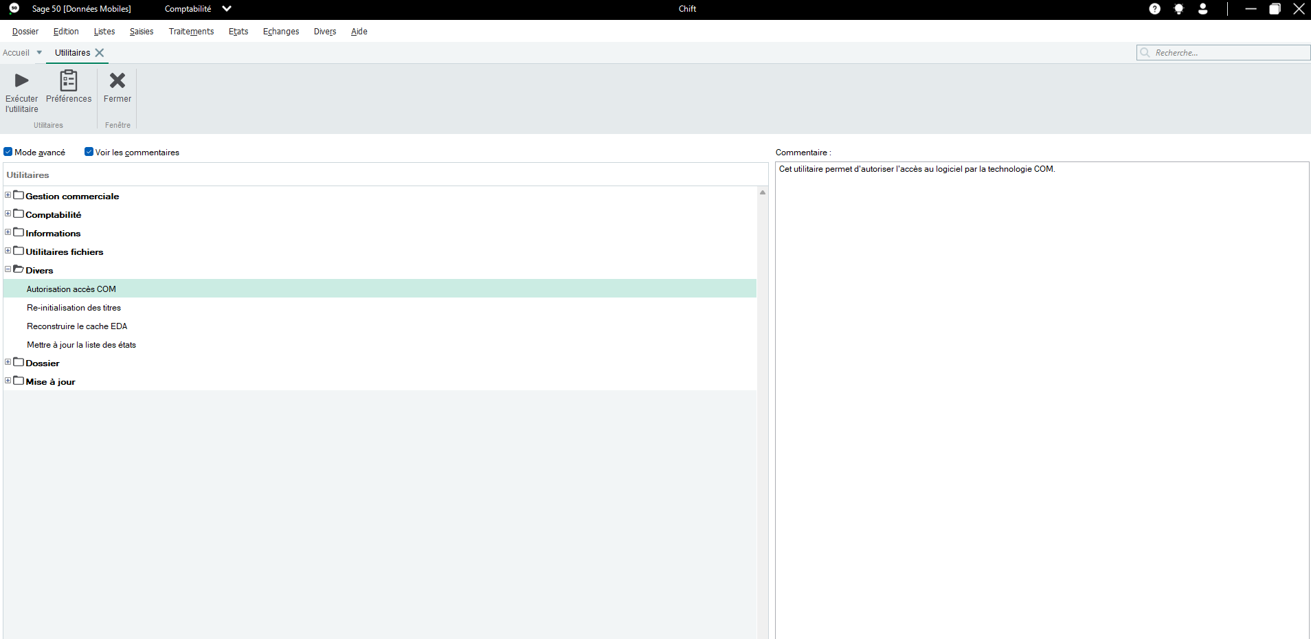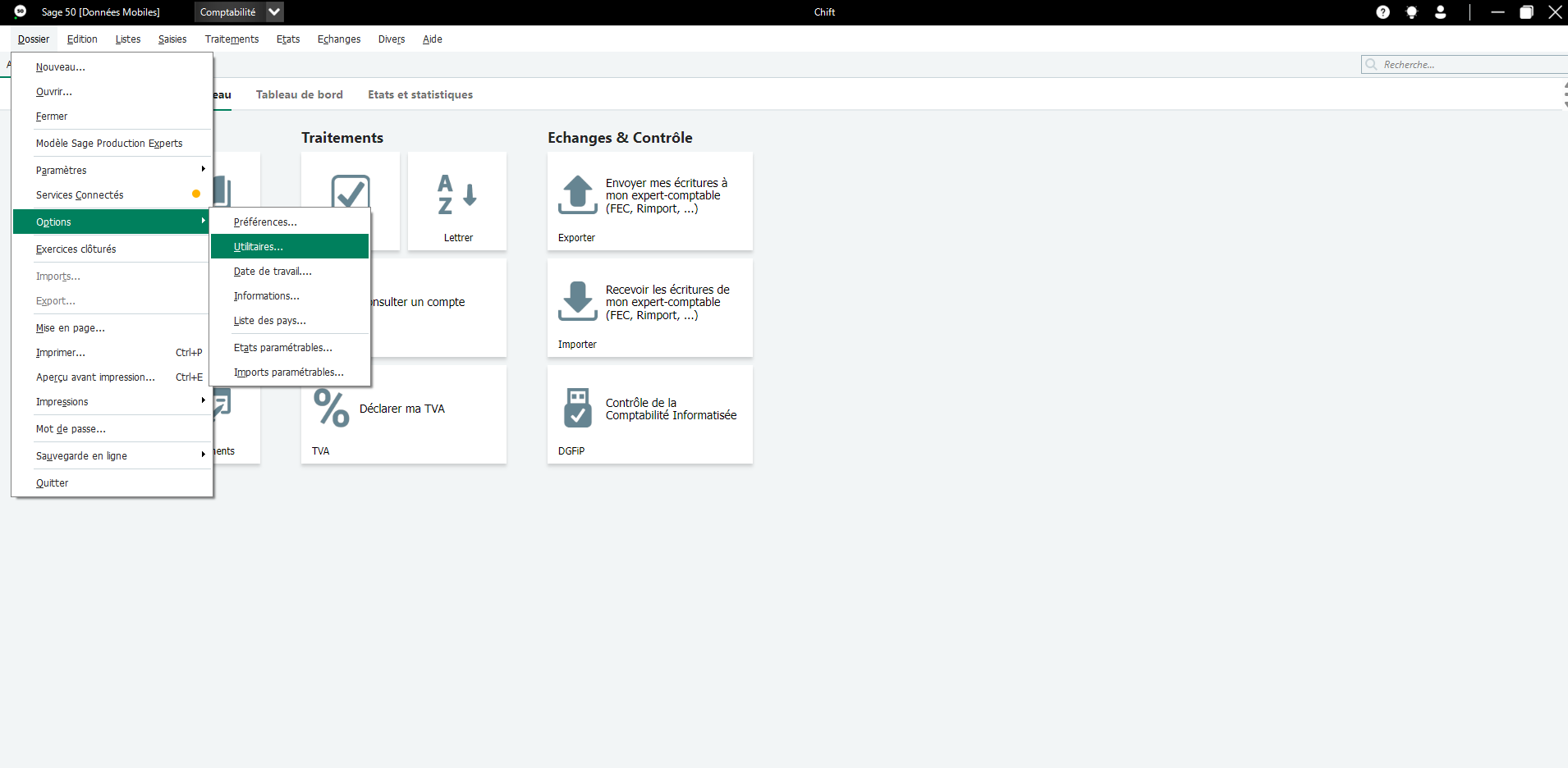 From the Sage 50 menu → File → Options → Utilities