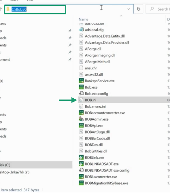 In the form that you filled on Chift, you had to indicate the path of a folder where Bob50 is installed. This path is used to find the Bob.ini file. Copy this path and paste it to your file explorer. Then open the Bob.ini file using the notepad. You should have something looking similar to this: