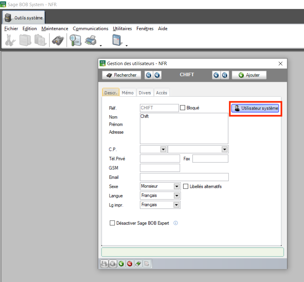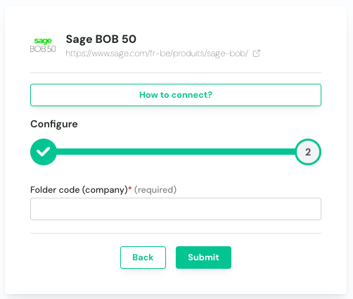 Step 1: Find the accounting folder code from your authentification page on your Sage BOB 50 account.