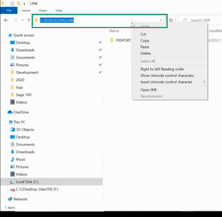 Go to folder → Local Disk→ Bob50DATA → LINK and copy the route to the file.
