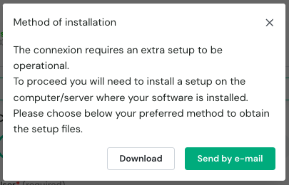 After the connection step, you will have two options to download and install the local agent on the same server as your Sage BOB50 instance: