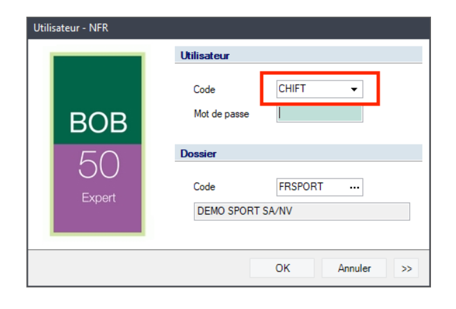 Have the code (not the password) of the ADMIN user in BOB50.